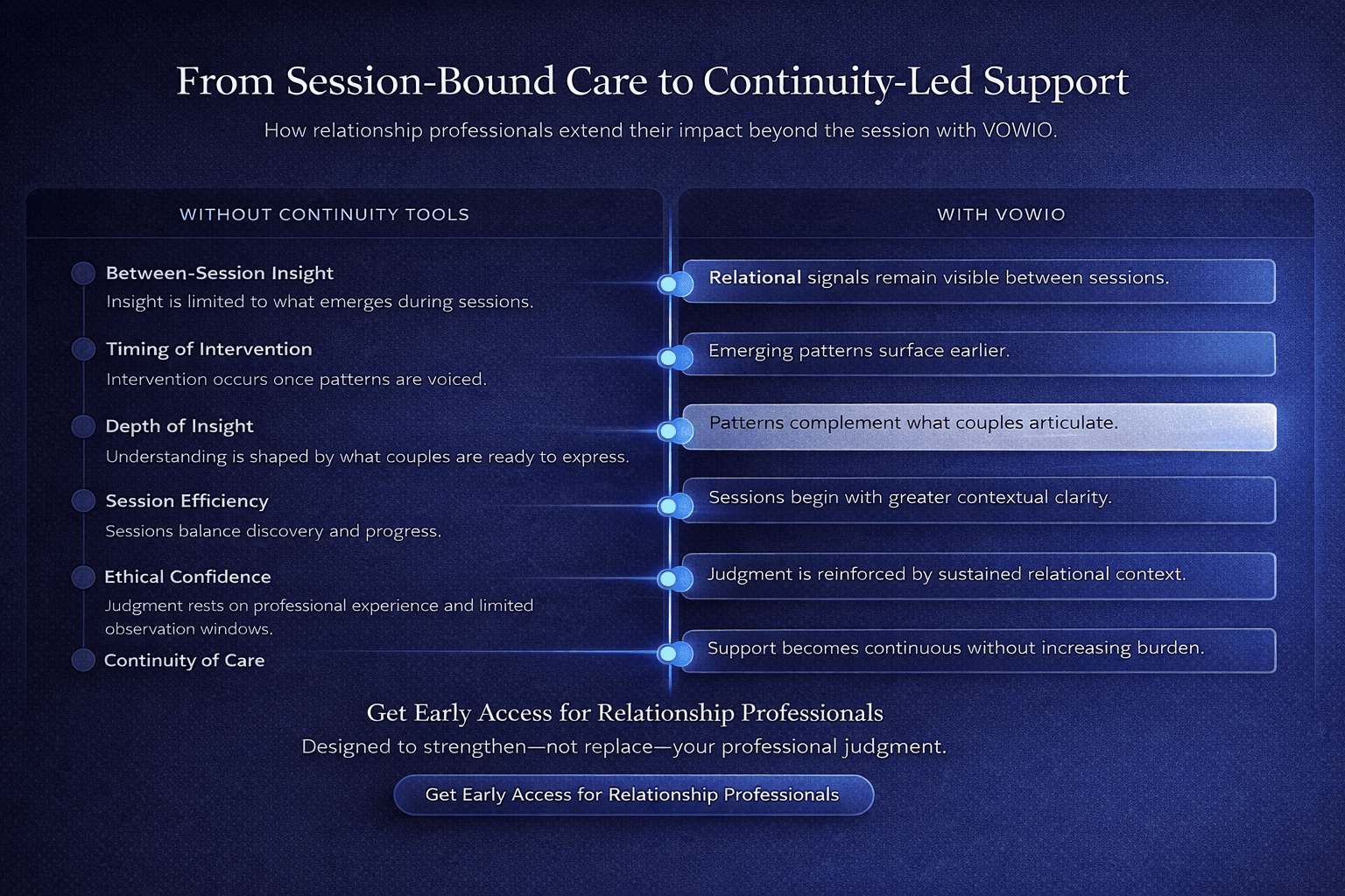 Your professional judgment is sound. VOWIO strengthens continuity between sessions.