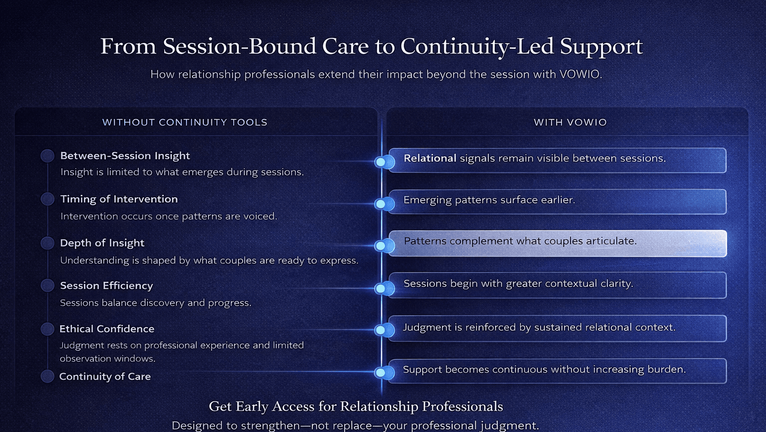 Trusted by relationship leaders who support couples beyond the limits of sessions, memory, and judgement.